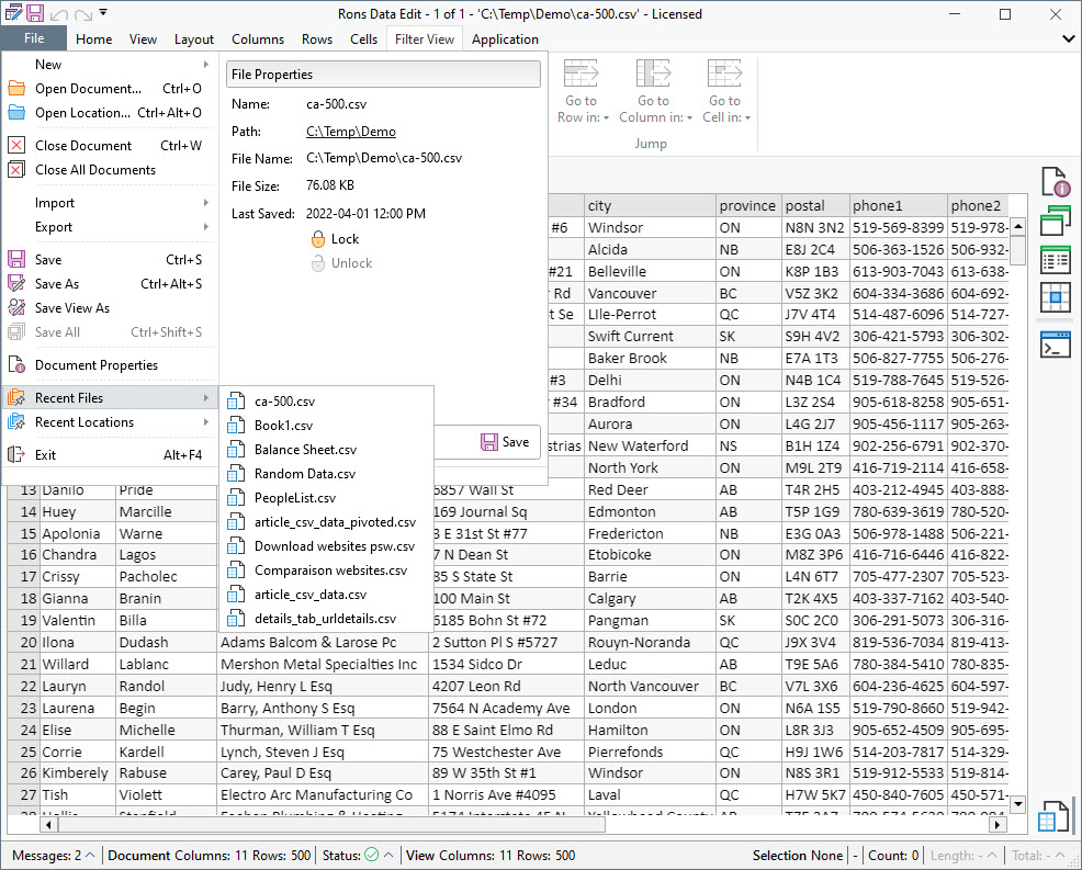 In this article, we will explain how to open and view data in Rons Data Edit, our professional CSV Editor. Fully designed to handle tabular text files, simple to open and get started, but packed with editing tools after a little exploration.