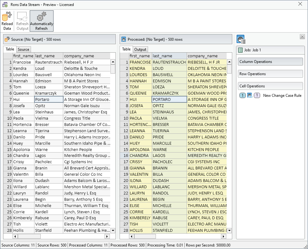After the Job has been fully configured, the output can be previewed to see the result of the rules before execution.